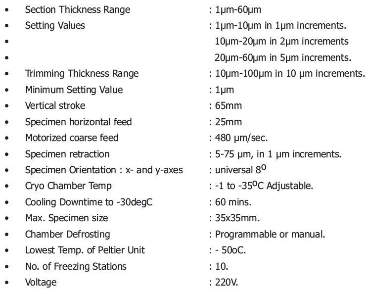 • LCD screen which display data such as section thickness, temperature & other parameters.