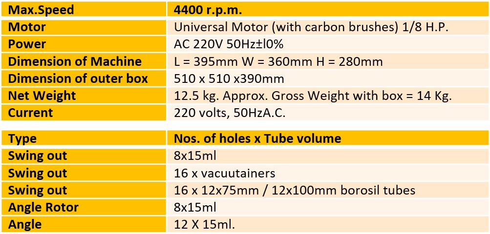 - Compact Laboratory Centrifuge Machine, Microprocessor based, digital.